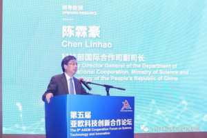 第五届亚欧科技创新合作论坛大会开幕式上,科技部国际合作司副司长陈霖豪首先强调了科技创新对于亚欧会议成员国在后疫情时代扭转经济增长乏力局面,加快经济转型升级中所起到的强大支撑作用,其次高度肯定了亚欧科技创新合作中心在深化国际科技合作发挥的平台作用,尤其是在加快建设一批国际联合研究中心和技术转移中心,促进彼此技术、资本、知识等创新要素有效对接中的突出表现,最后高度赞扬亚欧科技创新合作中心五年来在科技项目落地,科技成果转移转化方面取得的巨大成效,并表达了对未来合作的期望。