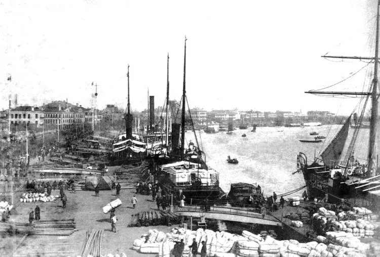 A bustling wharf in Canton, the Qing Dynasty Four years later, Canton saw the establishment of the Canton Insurance Society, the first foreign-owned insurance company in China. Professional insurance service was officially introduced to the Chinese market. The Society was managed by two British trading firms, namely the Dent & Co. and Jardine Matheson & Co., in turns. It was also from Canton that the banking industry developed in China. In 1845, the Oriental Bank Corporation, a British imperial bank, opened a branch in Hong Kong and an office in Canton, which became the earliest foreign bank to enter China. It was also the first commercial bank ever set up in China. The bank's office in Canton was specialized in exchange business to facilitate trade among Britain, India and China at that time. The bank expanded its operations rapidly to other Chinese cities but had to pull out of China in 1884 because of severe losses due to poor investment. Once a key player in China's capital market, the Oriental Bank was later replaced by the Hong Kong and Shanghai Banking Corporation (HSBC). For decades, Canton was the only port open to foreign trade during the Qing Dynasty. Foreign currencies flocked into China through Canton, which quickly held a dominant position in circulation. To curb the flood of foreign coins in the market, Zhang Zhidong, the then governor of Guangdong and Guangxi, proposed to the Imperial Court in 1887 to build the first modern mint in Guangdong to produce domestic coins.
